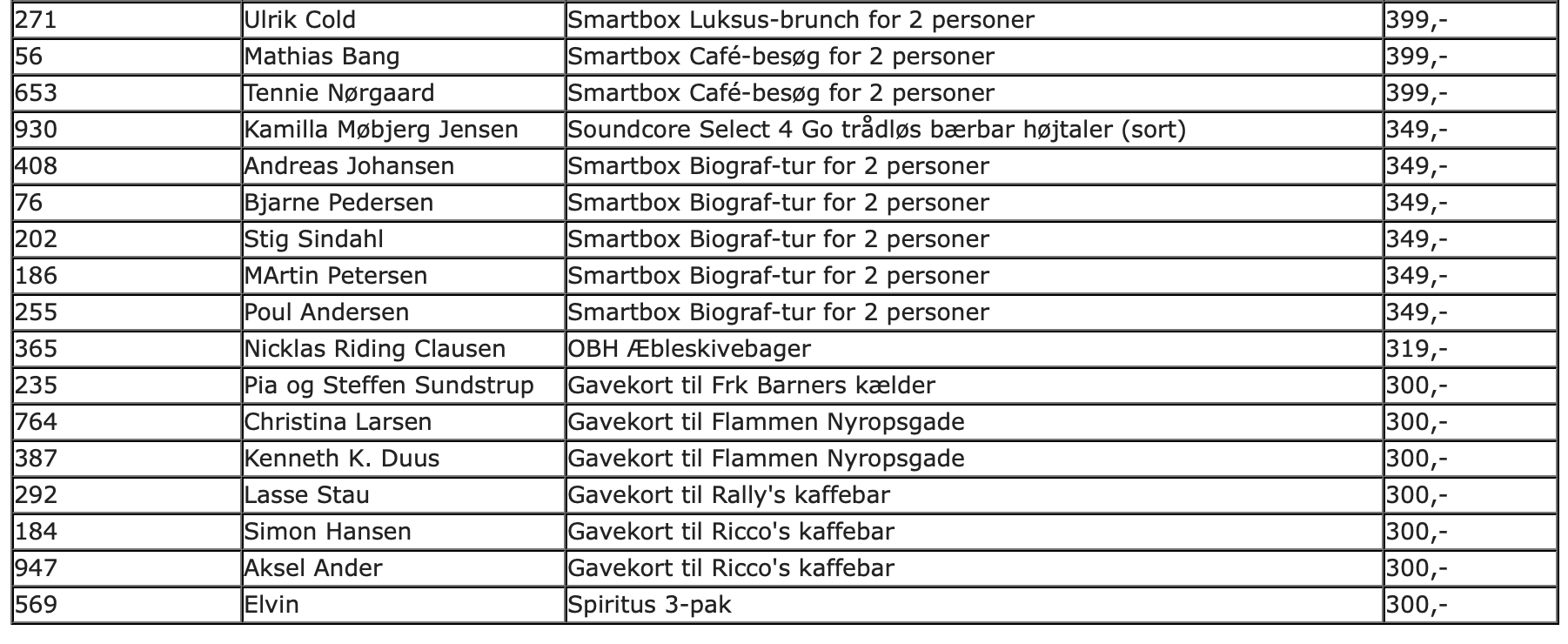 Alle nedenstående vindere vil blive kontaktet direkte.